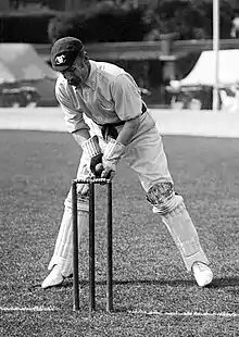 Wickham played 82 first-class matches for Somerset County Cricket Club between 1891 and 1907. He also played for a number of representative teams and for Oxford University, and played second-class cricket for Norfolk County Cricket Club from 1881 to 1890. A wicket-keeper and right-handed batsman, he scored 760 career first-class runs, and claimed 90 catches and 60 stumpings.[4] He had a distinctive wicket-keeping stance, bending low with his feet more than a metre apart.[5]