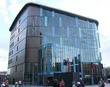 - Royal Welsh College of Music & Drama, North Road, completed a £22.5 million redevelopment in 2011. The impressive exterior blends with the nearby Civic Centre and parklands using Portland stone cladding and vertical cedar louvres. The interior contains an art gallery and a new recital hall.[26]