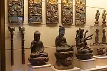 Vietnamese modern art includes artistic work materialized during colonial period between the 1860s to 1970s, and significantly ascribed to the founding of "Ecole Supérieure des Beaux-Arts de l'Indochine" in October 1925.[4] Before 1925, paintings and carvings were mainly created for religious purpose, in a decorative manner for example lacquered furniture and utilitarian ceramic and porcelains, subordinated to demands by the local temples and pagodas use.[4]