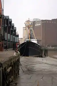 In June 2018 to was announced that she was to move to dry-dock in September 2018 while flood defence work is undertaken on the River Hull.[8] This was delayed while other flood defence work was undertaken but on 4 August 2019 was she moved to a temporary berth in Alexandra Dock.[9][10][11] Later she will move to a new permanent berth in the redeveloped North End Shipyard in Dock Office Row as part of the Hull Maritime City project, back in the Museums Quarter;[12] initial groundwork on the shipyard's visitor centre commenced in November 2022.[13] On 6 October 2021, she was moved by two tugs to Dunston's shipyard to undergo restoration work.[14]