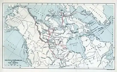 Government interest in the North began with the English explorations of Frobisher and Davis in the 1500s and the 1670 Hudson's Bay Company (HBC) charter.[3] The HBC charter gave the company title to Rupert's Land, the watershed of Hudson Bay. In 1821, the rest of the present-day Northwest Territories and Nunavut south of the Arctic coast was added to the charter. Then, in 1870, the Hudson's Bay Company transferred title to its lands to Canada with its purchase of Rupert's Land. Thus, the new dominion acquired legal sovereignty over all of what is now northern Canada except for the Arctic islands. This northern mainland sovereignty has never been questioned although there have been challenges to Canada's Arctic sovereignty in the past.[3]