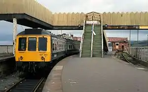![]() The station on 22 June 1984, with the 12.33 to Glasgow Central waiting to depart | |