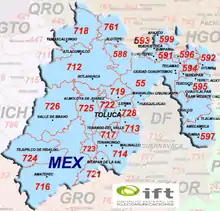 - "Area Codes Maps and Stats". www.ift.org.mx. Instituto Federal de Telecomunicaciones. Retrieved 7 November 2018.