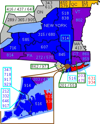 On July 16, 2016, area code 934 was created to overlay 631, which was nearing depletion. This was the first overlay area code for an area in the state of New York outside New York City and required 10-digit dialing for both area codes, effective June 18, 2016.[3]