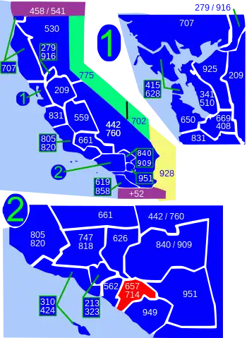 | West: 310/424 (offshore islands), 562 | area codes 657/714 | East: 951 |
