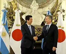 Diplomatic relations were restored by the signing of the San Francisco Peace Treaty in 1952.[4] Argentine president Arturo Frondizi visited Japan in 1960, and subsequently bilateral trade and Japanese investment into Argentina have increased in importance. Japanese imports were primarily foodstuffs and raw materials, while exports were mostly machinery and finished products. In addition, agreements on cooperation in various aspects were concluded. In 1963, the two governments concluded agreement on immigration, in 1967 a treaty of amity, commerce and navigation and in 1981 agreements on technical cooperation and cultural exchange.