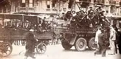 On 23 December 1975, several hundred ERP fighters[14] with the help of hundreds of underground supporters, staged an all-out battle with the 601st Arsenal Battalion nine miles (14 km) from Buenos Aires and occupied four local police stations and a regimental headquarters.[15] 63 guerrillas,[16] seven army troops and three policemen were killed.[17] In addition 20 civilians were killed in the crossfire. Many of the civilian deaths occurred when the guerrillas and supporting militants burned 15 city buses[18] near the arsenal to hamper military reinforcements. This development was to have far-reaching ramifications. On 30 December 1975, urban guerrillas exploded a bomb inside the Army's headquarters in Buenos Aires, injuring at least six soldiers.[19]