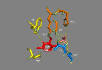 - John RA (April 1995). "Pyridoxal phosphate-dependent enzymes". Biochimica et Biophysica Acta (BBA) - Protein Structure and Molecular Enzymology. 1248 (2): 81–96. doi:10.1016/0167-4838(95)00025-p. PMID 7748903.
