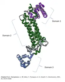 ![]() Crystallographic structure of the human ASL monomer with labeled domains.[2] | |||||||