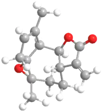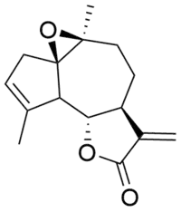 Arglabin is a sesquiterpene lactone belonging to the guaianolide subclass bearing a 5,7,5-tricyclic ring system which is known to inhibit farnesyl transferase.[1] It is characterized by an epoxide on the cycloheptane as well as an exocyclic methylene group that is conjugated with the carbonyl of the lactone. Arglabin is extracted from Artemisia glabella, a species of wormwood, found in the Karaganda Region of Kazakhstan.[2] Arglabin and its derivatives are biologically active and demonstrate promising antitumor activity and cytoxocity against varying tumor cell lines.[3]