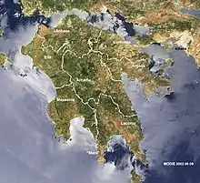 The prefecture Arcadia (Νομός Αρκαδίας) is almost entirely rural and mountainous (Arcadian Plateau). The villages are scattered all over the land; there are only very few cities, even the largest city Tripoli, Greece, with ca. 30000 inhabitants (without district and hinterland) is relatively small. Steep mountains and forests are scarcely populated. Extensive forests dominate in the central north (Mainalo) and the central-south, following the prefectures southern border which marks the mountain chain of the Parnon, way down to the coast of the Argolic Gulf. Valleys divide the mountain chains, but they are important draining paths only from November to April, while many brooks even dry up totally. The size of the valleys indicate, there were larger water quantities in earlier time periods.