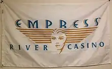 ![]() The flag pictured is currently the only one know to have survived the fire that destroyed the Empress Casino. It displays the casinos official logo and now belongs to a private collector. | |