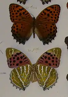 Argynnis childreni, the large silverstripe, is a species of nymphalid butterfly. It was first described by George Robert Gray in 1831.[1] Also known as the Himalayan fritillary, it is found in mountainous areas, from northeastern India into China. Its wingspan is 8–9 centimetres (3.1–3.5 in). The forewings are predominantly orange with black spots, while the hindwings are brown with a blue margin, with many white stripes.