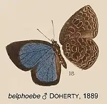 Arhopala belphoebe is a butterfly in the family Lycaenidae. It was described by William Doherty in 1889. It is found in the Indomalayan realm (Assam and Peninsular Malaya).[2] The subspecies A. b. cowani Corbet, 1941 is described from Malaya.