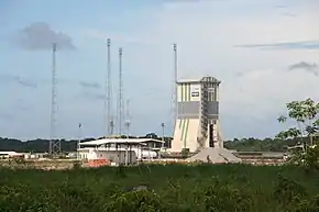 Launch vehicle components shipped from Saint Petersburg first arrived in French Guiana by ship in November 2009.[25] The Soyuz Launch Site acceptance review took place during the last week of March 2011, leading to the first simulated launch campaign between 29 April and 4 May 2011.[6][26] The launch site was officially handed over from ESA to the Arianespace on 7 May 2011.[27]