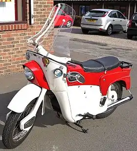 The Ariel Leader was a British motorcycle produced by Ariel Motorcycles between 1958 and 1965. A radical design, the Leader was fully enclosed with an integral windscreen and was the first British motorcycle to have optional[2] flashing indicators.[3] Ariel could not compete against Japanese imports and the last Ariel Leader was produced when the company closed in 1965.[4]