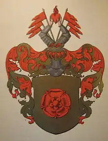 - Achen, Sven Tito (1973). Danske adelsvåbener En heraldisk Nøgle. Politikens Forlag. p. 591.