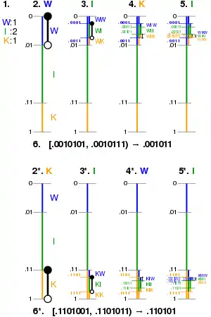 Encoding the message "WIKI" with arithmetic coding