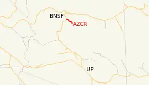 The Clarkdale Arizona Central Railroad (reporting mark AZCR) is an Arizona short-line railroad that operates from a connection with the BNSF Railway at Drake, Arizona. The AZCR runs 37.8 miles (60.8 km) from Drake to Clarkdale, Arizona. An excursion train also runs on the line through Verde Canyon and is operated by the same owners under the Verde Canyon Railroad. The AZCR is owned by David L. Durbano.