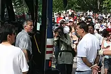 The Major League Baseball Players Association, of whose members one quarter are born outside the U.S., said that the law "could have a negative impact on hundreds of major league players," especially since many teams come to Arizona for spring training, and called for it to be "repealed or modified promptly."[139] A Major League Baseball game at Wrigley Field where the Arizona Diamondbacks were visiting the Chicago Cubs saw demonstrators protesting the law.[140] Protesters focused on the Diamondbacks because owner Ken Kendrick had been a prominent fundraiser in Republican causes, but he in fact opposed the law.[141] The Phoenix Suns of the National Basketball Association wore their "Los Suns" uniforms normally used for the league's "Noche Latina" program for their May 5, 2010 (Cinco de Mayo) playoff game against the San Antonio Spurs to show their support for Arizona's Latino community and to voice disapproval of the immigration law.[142] The Suns' political action, rare in American team sports, created a firestorm and drew opposition from many of the teams' fans;[143] President Obama highlighted it, while conservative radio commentator Rush Limbaugh called the move "cowardice, pure and simple."[144]