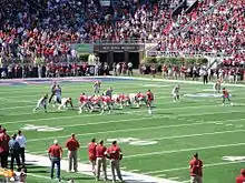 The Arkansas–Ole Miss football rivalry is an American college football rivalry between the Arkansas Razorbacks football team of the University of Arkansas and the Ole Miss Rebels football team of the University of Mississippi.[1][2] The teams first met in 1908, and have played each other every year since 1981. Arkansas leads the series, which includes two wins by Ole Miss in postseason bowl games, the 1963 and 1970 Sugar Bowls.