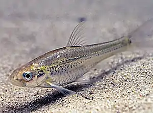 The Arkansas River shiner (Notropis girardi) is a species of ray-finned fish in the genus Notropis. It is native to part of the central United States. Historically this shiner was widespread and abundant throughout the western portions of the Arkansas River basin in Kansas, New Mexico, Oklahoma, and Texas. It is extirpated from the River in Kansas and Oklahoma. Recently, the species was almost entirely confined to about 820 km (510 mi) of the Canadian River in Oklahoma, Texas, and New Mexico, but it has been introduced and is now widely established in Pecos River in New Mexico.