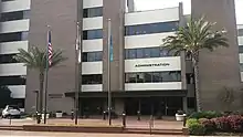 The campus offers opportunities for individual or group recreation, such as the Arlin R. Horton Sports Center which originally opened in 1993.[28] The sports center has facilities for ice skating, bowling, racquetball, miniature golf, table tennis, and weight lifting.[29] In addition with an expansion completed in 2008 by Hewes & Company, LLC, it includes a surfing wave, water cannons, an inline skating track, a rooftop sun deck, a snack bar, escape room and climbing walls.[30][29] The campus also has the John Ray Hall Field House in which students can play basketball, swim, work out in the weight room, and play tennis. For students willing to make the 30-minute drive, the West Campus has 24 Hobie catamarans with classes "offered in sailing, kayaking, swimming, and lifeguarding."[31]