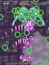 Pressing A fires the main Shot and, if the requisite powerups have been collected, the player's Options. Pressing B fires the Bomb and pressing nothing powers up the Aura, a small energy field at the front of the player which causes damage.