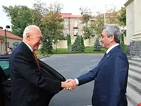 In September 2009, Minister Mentor of Singapore Lee Kuan Yew visited Armenia, where he was received by Prime Minister of Armenia Serzh Sargsyan. During his visit, Lee was awarded the Armenian state award of Order of Honor, for his contribution to the establishment and deepening of relations between the two countries.[6]