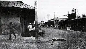 The Armenian–Tatar massacres (also known as the Armenian-Tartar war, the Armeno-Tartar war) refers to the bloody inter-ethnic confrontation between Armenians and Caucasian Tatars (later known as Azerbaijanis)[6][7] throughout the Russian Caucasus in 1905–1907.[8][9][10] The massacres started during the Russian Revolution of 1905. The most violent clashes occurred in 1905 in February in Baku, in May in Nakhchivan, in August in Shusha and in November in Elizabethpol, heavily damaging the cities and the Baku oilfields. Some violence, although of lesser scale, broke out also in Tiflis.