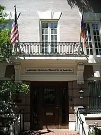 New York was also a destination for Armenian immigrants in the early 20th century. The area between East 20th Street, Lexington Avenue, and First Avenue, where a compact Armenian population lived and Armenian shops existed, was called "Little Armenia" until the 1960s.[101] The area was mentioned in 1914 book Our Mr. Wren: The Romantic Adventures of a Gentle Man by Sinclair Lewis (the 1930 Nobel Prize Winner).[102] Today, according to estimates, there are 150,000 Armenians in the Tri-State area. Queens is home to some 50,000 Armenian Americans, Manhattan has 10,000 Armenian population centered in Gramercy Park, Kips Bay, and Murray Hill, where St. Vartan Armenian Cathedral is.[103]