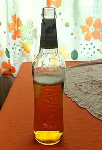 Oghi (Armenian: օղի òġi) – an Armenian alcoholic beverage usually distilled from fruit;[67] also called aragh.[68] Artsakh is a well-known brand name of Armenian mulberry vodka (tuti oghi) produced in Nagorno-Karabakh from local fruit.[69] In the Armenian Diaspora, where fruit vodka is not distilled, oghi refers to the aniseed-flavored distilled alcoholic drink called arak in the Middle East, raki in Turkey, or ouzo in Greece.[70][71]