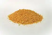 Tarhana is a mixture of yogurt and bulgur wheat.[34] The yogurt and bulgur are combined and left on a tray until the grains absorb the yogurt. Once the liquid is absorbed, the grain is placed in the sun to dry and then rubbed into a powder. This powder can be used to thicken soups or stews.[35] Traditionally, it was stored in cloth bags.[25] Three types tarhana are known from Agn (present day Kemaliye): the commonly known tahneh tarhana made from milled bulgur and ayran, chreh tarhana from bulgur and water (for Lent) and shira tarhana with bulgur and grape juice.[22] According to Stanley Kerr, a staff member at the Near East Relief orphanage for Armenian children, when the massacres began during the Battle of Marash Armenians sheltering at a soap factory sustained themselves on stores that included tarhana, dried fruits and olive oil.[36]