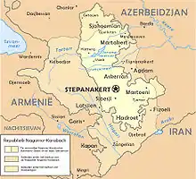 During the 2020 Nagorno-Karabakh War large parts of the Armenian-controlled Republic of Artsakh were captured by Azerbaijan.[43] While most of the Armenian residents fled in advance of the Azerbaijani army, with Armenian cities such as Hadrut being entirely depopulated, the few who remained behind were mistreated or even killed by Azerbaijani soldiers.[44] There have also been numerous reports that Armenian prisoners of war were tortured and nineteen were executed in captivity.[45][46] Armenian soldiers were also brutally mistreated, including multiple instances of beheadings recorded on video.[47]