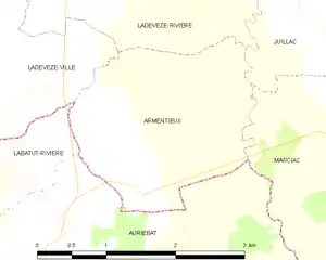 Armentieux is located in the canton of Pardiac-Rivière-Basse and in the arrondissement of Mirande.
