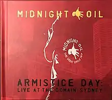 Armistice Day (subtitled Live at the Domain, Sydney) is a live album by Australian rock band Midnight Oil. The majority of the album was recorded live at The Domain in Sydney, Australia on 11 November 2017; also known as Armistice Day, with three tracks recorded at Sidney Myer Music Bowl in Melbourne on 6 and 8 November 2017 and three more tracks recorded at The Domain on 17 November. The album was released on 9 November 2018 on 2xCD and 2xDVD and peaked at number 5 on the ARIA Charts.