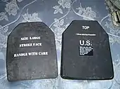 A pair of Small Arms Protective Insert plates, circa April 2006. These were issued to US Army units, before being replaced by the ESAPI.
