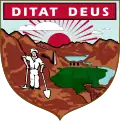 Crest: On a wreath Or and azure, a sheaf of three arrows argent armed and flighted gules behind a stringed bow fessways Or with grip of the second (gules). Motto: Strength from the soil. |
