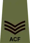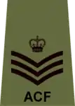 The adults who help to run the ACF are collectively known as Cadet Force Adult Volunteers (CFAVs). CFAVs wear the badges of rank as worn by Army NCOs[36] with the addition of the letters ACF under the badge.