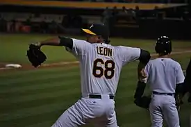 ![]() Leon pitching for the Oakland Athletics in 2015 | |
