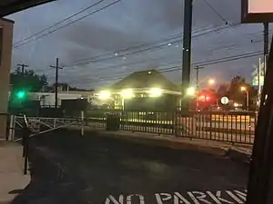 Trolleys arriving at this station travel between 69th Street Terminal in Upper Darby, Pennsylvania and Orange Street in Media, Pennsylvania. The station has a shed with a roof where people can go inside when it is raining. The shelter is the standard P&W "Red Arrow" stone shelter, similar to that of the Providence Road stop in Media, and the Woodland Avenue stop in Springfield.[1] Free parking is not available at this stop, and all parking lots within the vicinity are the property of local businesses, including that of a local branch of the U.S. Post Office.