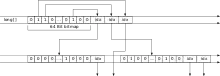 How to use this principle for an universal index for database and Information retrieval applications is described in.[3] A specialized and simplified solution demonstrating these concepts is shown below for an implementation of a 32-Bit-Integer set.