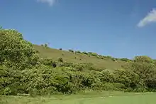 The Arreton Down Site of Special Scientific Interest is a large area of south-sloping chalk grassland in the central part of the Isle of Wight. It is grazed by cattle and horses during the winter, and is dominated by fine grasses such as red fescue and sheep's fescue. The flowering plants are typical of downland habitats and include horseshoe vetch, rock rose, wild thyme, carline thistle, pyramidal orchid, harebell, small scabious and the uncommon bastard toadflax.[1][2]
