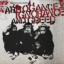 Arrogance Ignorance and Greed is the fourteenth studio album by English folk duo Show of Hands. Released in 2009 on the band's label Hands on Music, the album was produced by Stu Hanna of the English folk duo Megson, with additional production by Mark Tucker. The album followed an emotionally painful period for Steve Knightley where members of his family battled serious illnesses. This led to the album becoming particularly personal and darker than previous Show of Hands albums, aided by Hanna's direct and sharp production. The album also discusses several social and political concerns, and contains several collaborations with other musicians and vocalists.