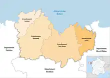 - Arrondissement of Saint-Brieuc, (prefecture of the Côtes-d'Armor department: Saint-Brieuc) with 113 communes.[4] The population of the arrondissement was 270,785 in 2016.