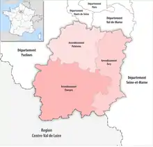 In January 2017 three communes passed from the arrondissement of Étampes to the arrondissement of Palaiseau.[6]