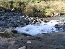 Arroyo Trabuco (known also as Trabuco Creek[1]) is a 22-mile (35 km)-long stream in coastal southern California in the United States.[4] Rising in a rugged canyon in the Santa Ana Mountains of Orange County, the creek flows west and southwest before emptying into San Juan Creek in the city of San Juan Capistrano. Arroyo Trabuco's watershed drains 54 square miles (140 km2) of hilly, semi-arid land and lies mostly in Orange County, with a small portion extending northward into Riverside County. The lower section of the creek flows through three incorporated cities and is moderately polluted by urban and agricultural runoff.