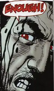 The Saint of Killers is the Patron Saint of Murderers and Assassination. He was originally a soldier serving in the Confederate Army during the American Civil War; both respected and feared for being absolutely merciless on the battlefield, his bloodlust verging on that of a berserker frenzy. After the war, he makes his living in the American West by collecting Native scalps and bounty hunting, until he rescues a young woman. She manages to break through to his gentler side, and the two fall in love and have a daughter. When his wife and child fall ill, he attempts to fetch medicine for them, but is delayed by a blizzard and gang of outlaws, which results in his family's death. He subsequently slaughters much of the gang and kills an innocent hostage, but runs out of bullets before killing the leader, which leads to his death after being impaled in the chest with a shovel.