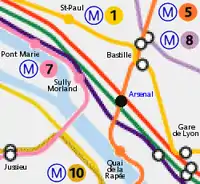 Arsenal (French pronunciation: [aʁsnal]) is a ghost station on the Paris métro, situated on line 5 between the stations of Bastille and Quai de la Rapée, in the 4th arrondissement of Paris.
