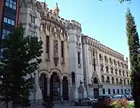 1916–23 | Conceived originally as a shopping center designed for Almacenes Simeón, this building marks a milestone in the history of Madrid architecture because regenerating the old eclecticism through a peculiar Art Nouveau formula, which, at the same time, remains related to the creations of the architect Antonio Palacios.[38] The conjunction between tradition and modernity is also evident in the exterior ornamentation, with a curious combination of secessionist elements and historicists. The hotel is located in plaza de santa Ana, on the corner of plaza del Ángel. | ![]() |